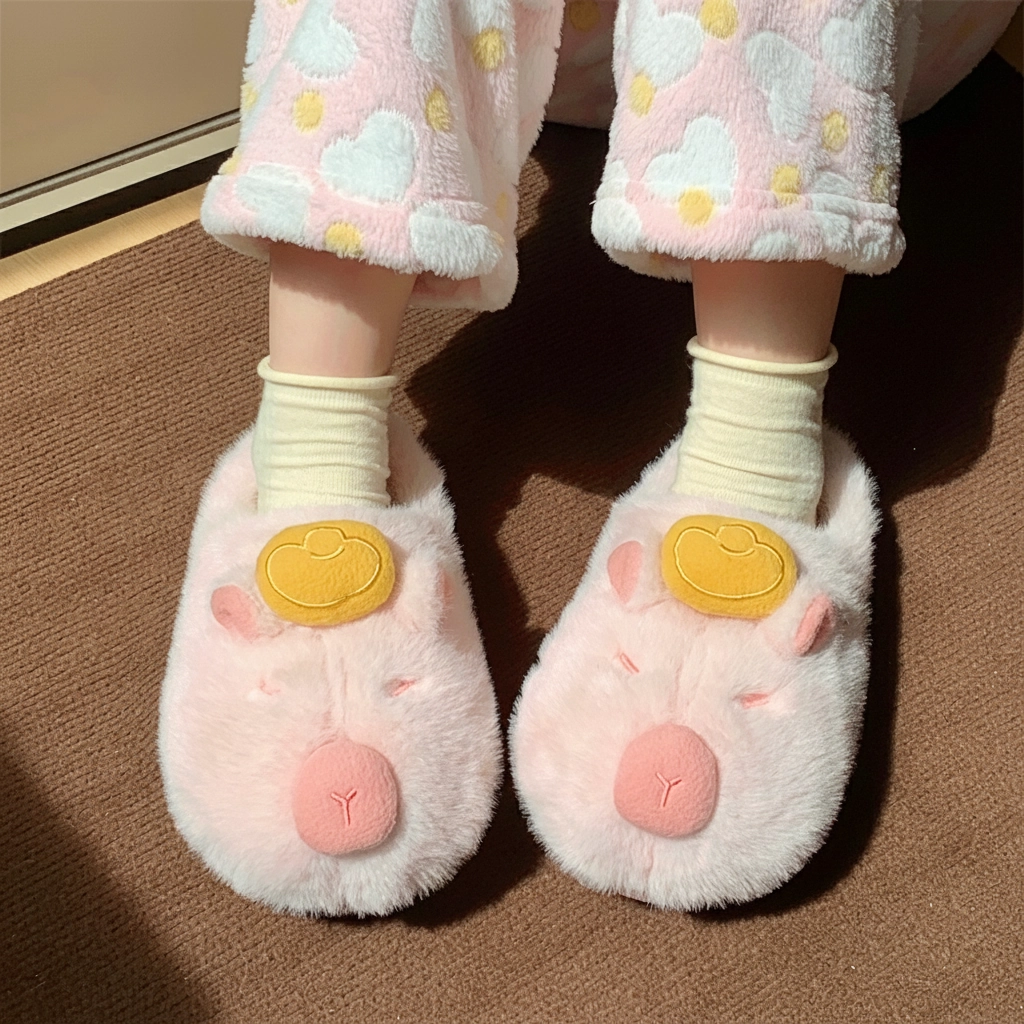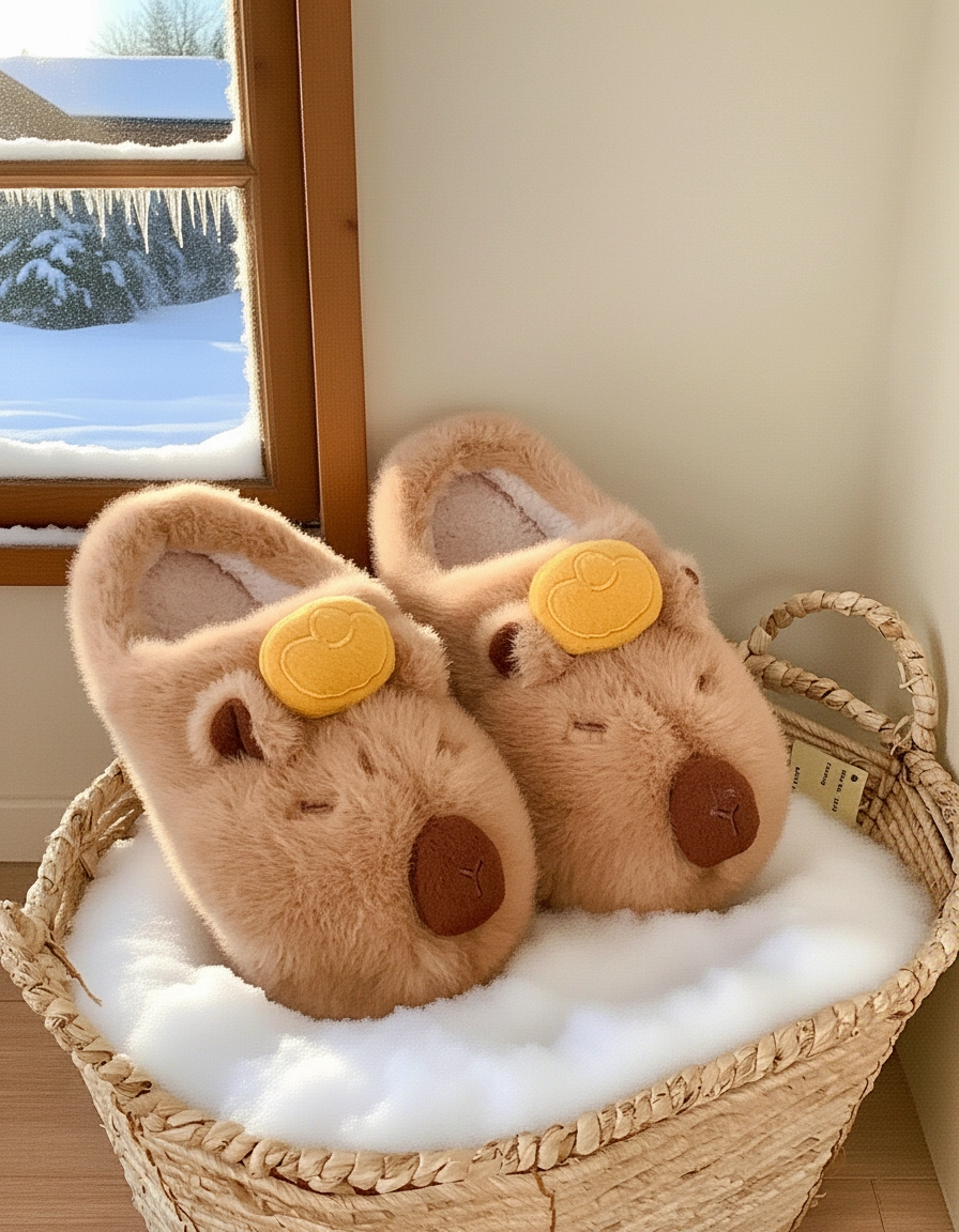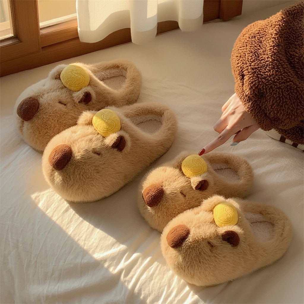 Yuzu Capybara Plush Slippers Fluffy House Slides