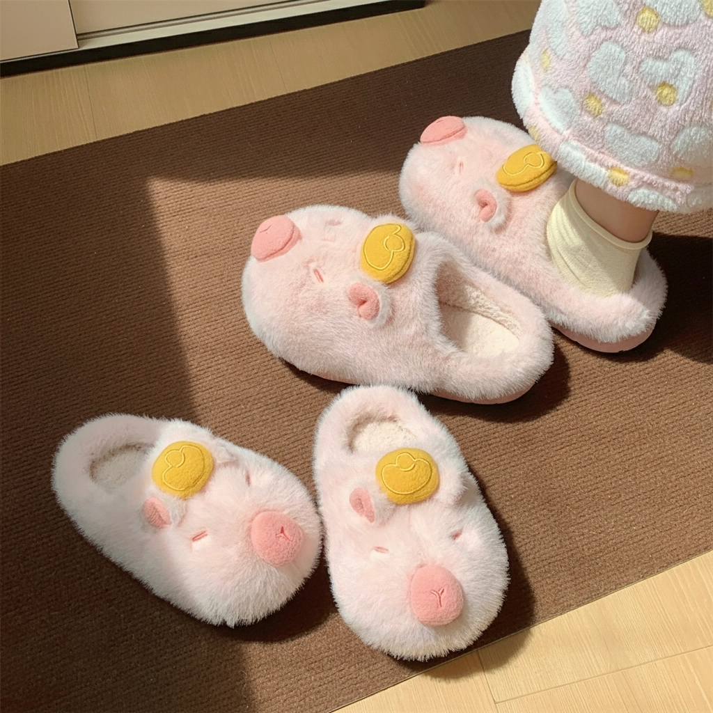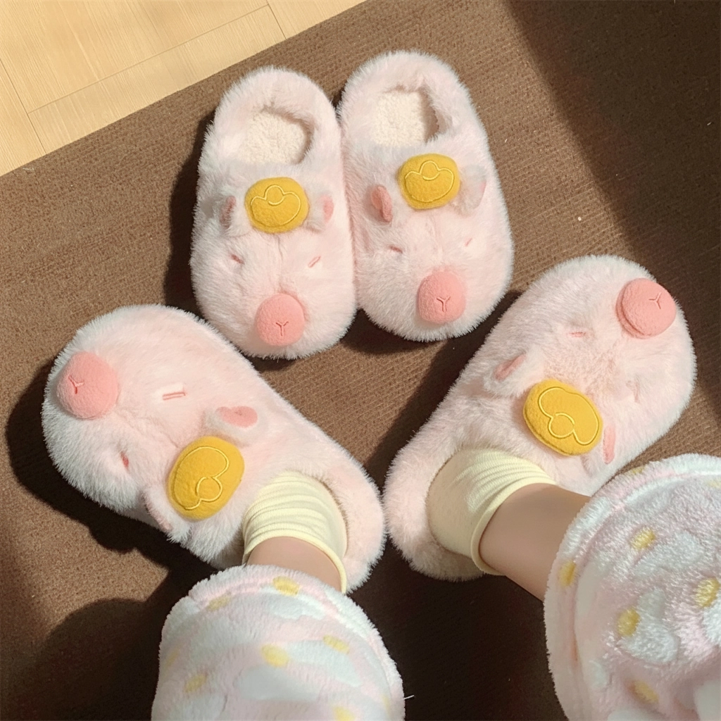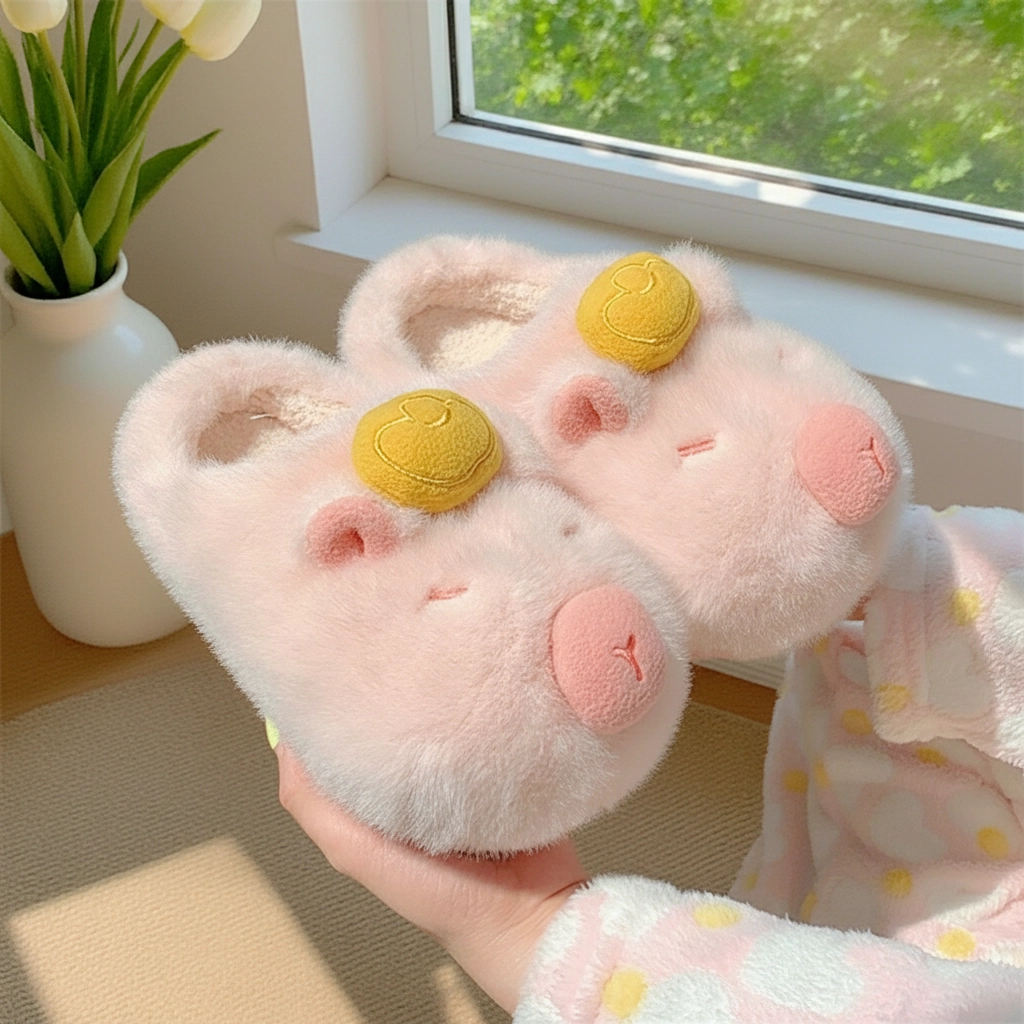 Yuzu Capybara Plush Slippers Fluffy House Slides