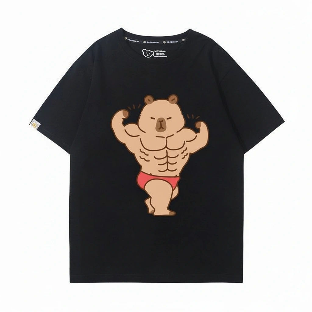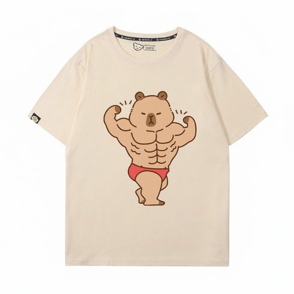 Forget the protein shakes—all you need is this shirt. We’ve taken the world’s chillest animal and given him the world’s most impressive physique. Featuring a capybara with massive biceps and rock-hard abs striking a bodybuilding pose, this tee is the ultimate gym flex.